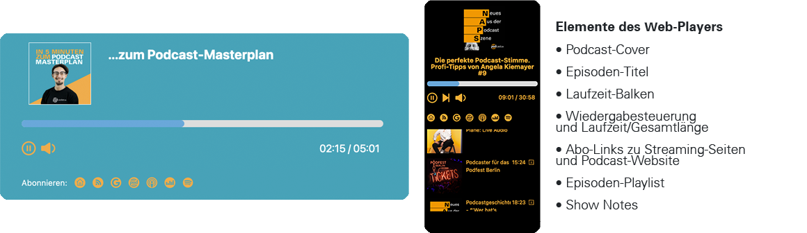 die guten Nachrichten gleich vorweg: wir arbeiten an einem neuen Webplayer, den wir euch schon bald zur Verfügung stellen möchten. Der Webplayer ist das ideale Tool, um euren Podcast in Homepages einzubinden und den Podcast ohne Umwege über Drittanbieter zugänglich zu machen. So sieht unser aktueller Player aus.