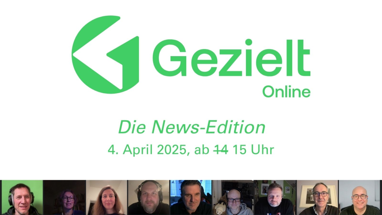 am Freitag, den 4. April um 15 Uhr (nicht, wie ursprünglich angedacht 14 Uhr) findet unser viertes Gezielt Online Meeting statt – diesmal als News-Edition.