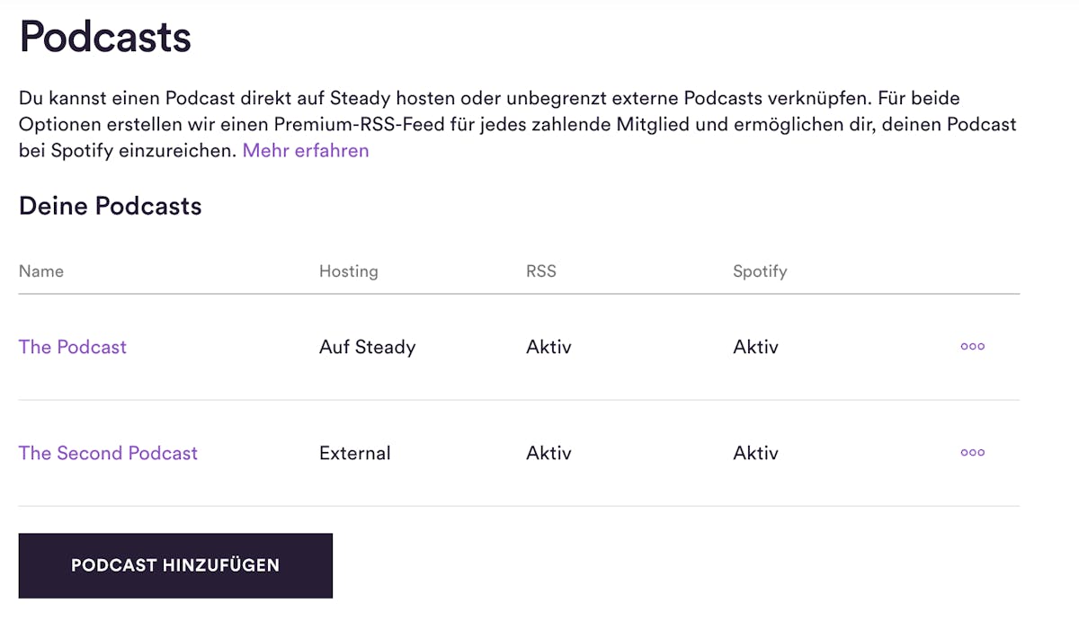 Neben dieser technischen Neuerung bekommt das Podcast-Dashboard bei Steady ein funktionales Update: Der Einbindungsprozess externer Feeds erfolgt per Verifizierungscode, und Podcasts können wie gewohnt hinter einer Paywall angeboten werden – unabhängig davon, ob es sich um Audio- oder Videoformate handelt. Auch die Synchronisation von kostenlosen und Premium-Feeds bleibt möglich, sofern Spotify als Plattform genutzt wird.