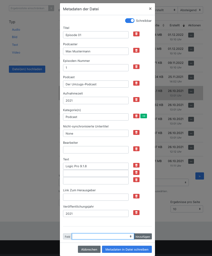 Schon jetzt können wir euch neue Funktionen vorstellen: 1. Episoden-Vorlagen und 2. das Bearbeiten von Metadaten (ID3-Tags) direkt in der Mediathek.